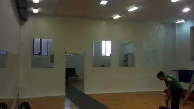 Когда необходим скрыть какую-то часть пространства двора можно использовать ПВХ штору как перегородку.