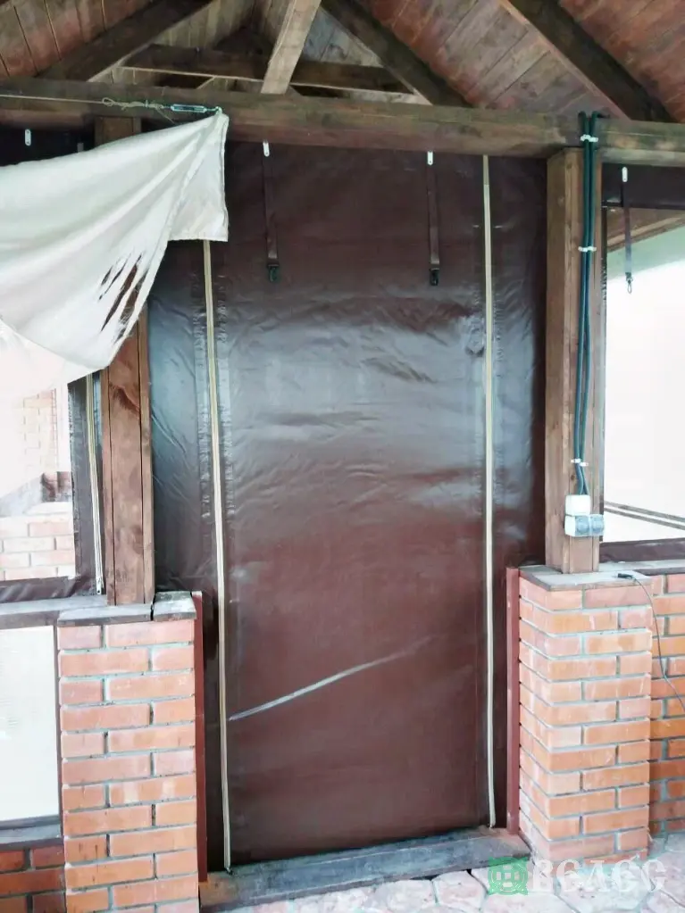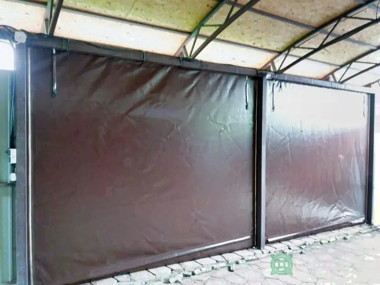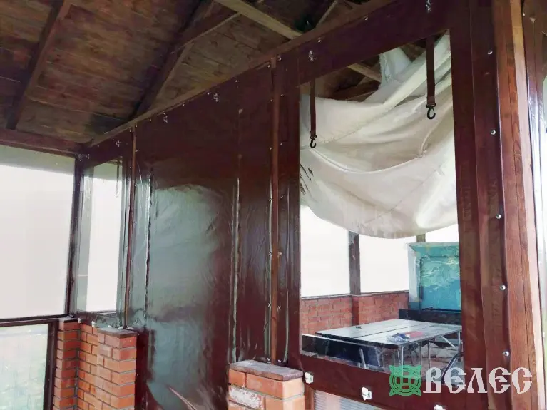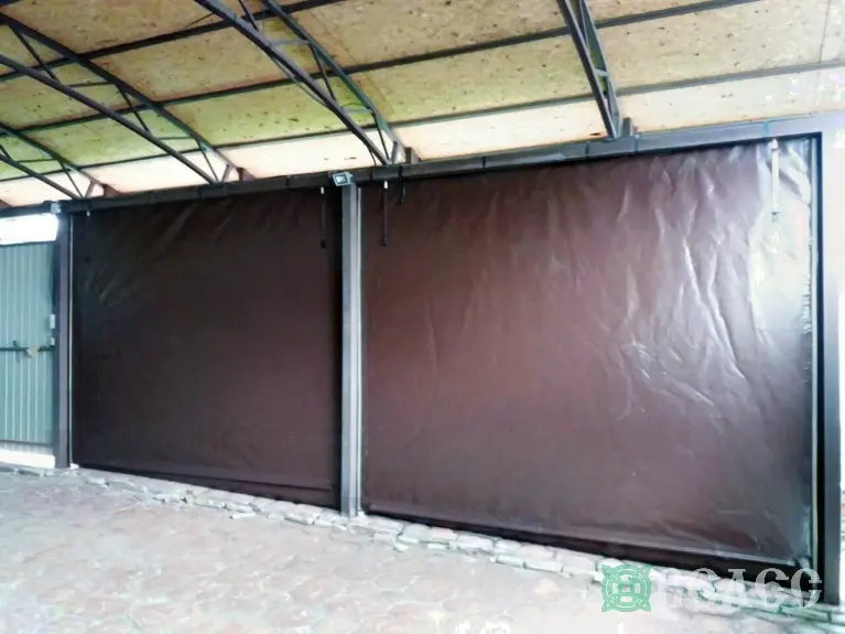 Беседка с прозрачными ПВХ окнами и шторы для навеса машин.