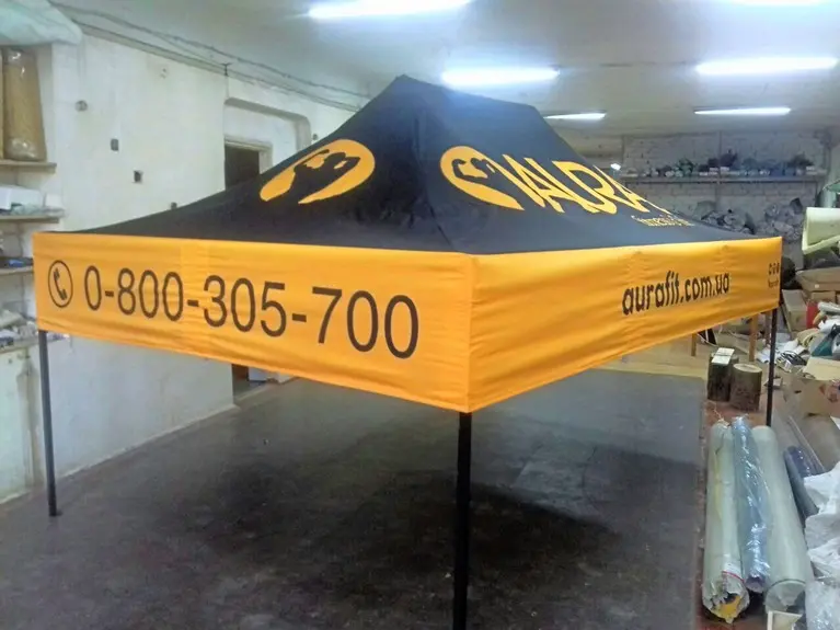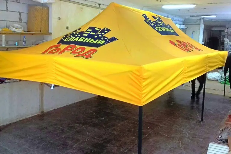 Ознакомиться с ценами и оформить заказ на стандартные однотонные (без рекламы) шатры можно на страничке по раздвижным шатрам.