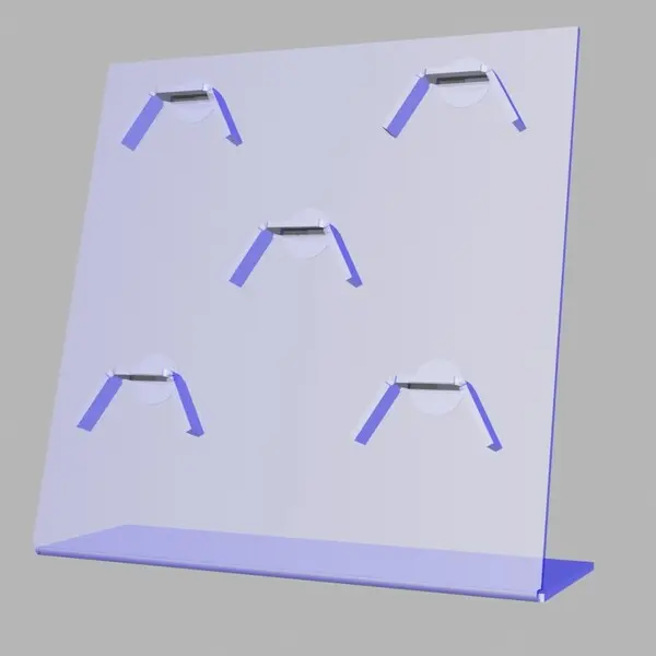 Подставка из оргстекла под браслеты прямоугольная. С каждого бока имеется по три лопасти.