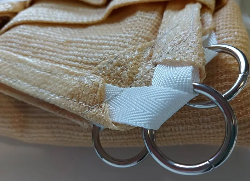 Тент изготовлен из специальной сетчатой ткани, которая задерживает до 98% ультрафиолетового излучения. Плетение из моноволокна пропускает дождь, но эффективно защищает от солнца, позволяя размещать тент в горизонтальной плоскости. Запатентованная технология фиксирует каждый стежок, обеспечивая высокую прочность на разрыв и устойчивость к ветру. Материал не впитывает влагу и не подвержен гниению.