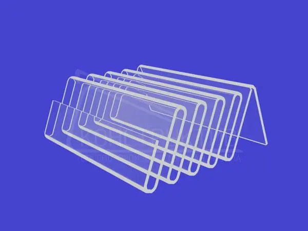 Подставка из прозрачного оргстекла используется на выставках для раздачи визиток компании, а так же в офисе на столах сотрудников