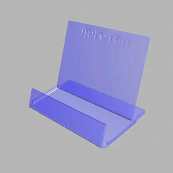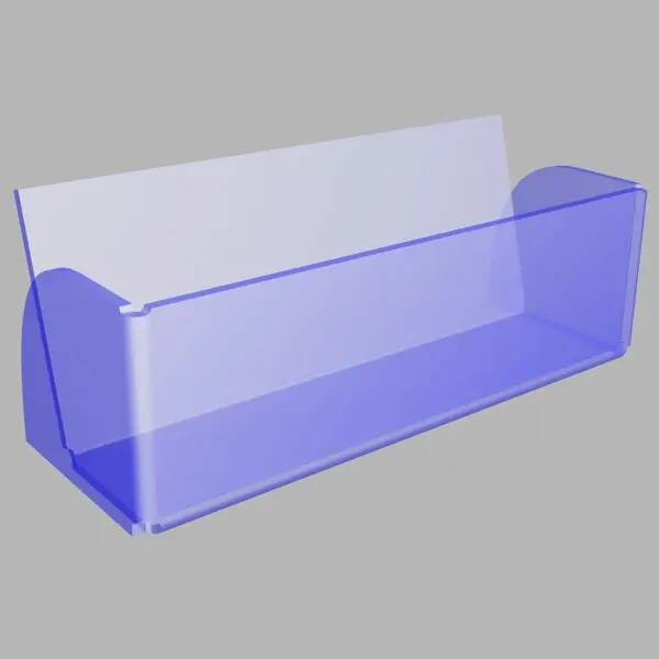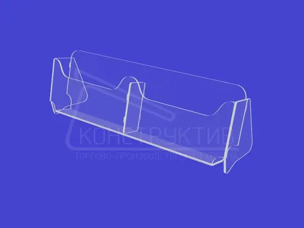 Подставка из прозрачного оргстекла используется для размещения визитных карточек. Ограничитель позволяет доставать визитки по 1 шт.