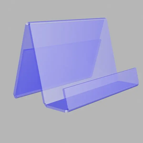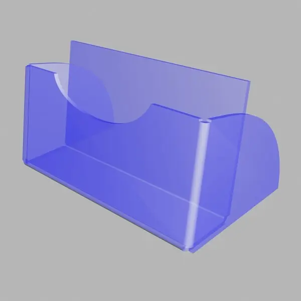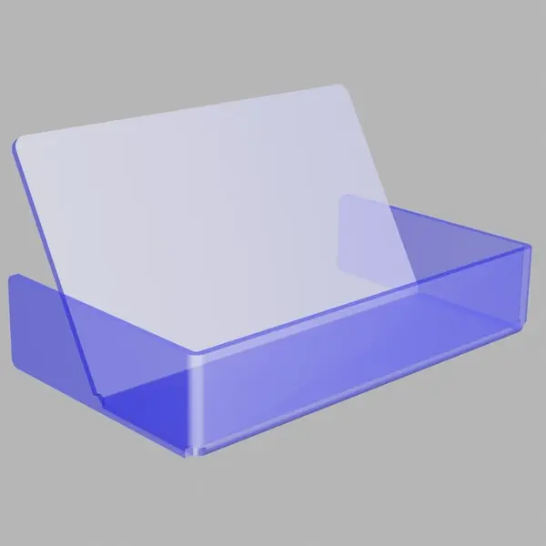 Подставка из прозрачного оргстекла используется на размещения визитных карточек на столе сотрудника.