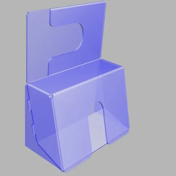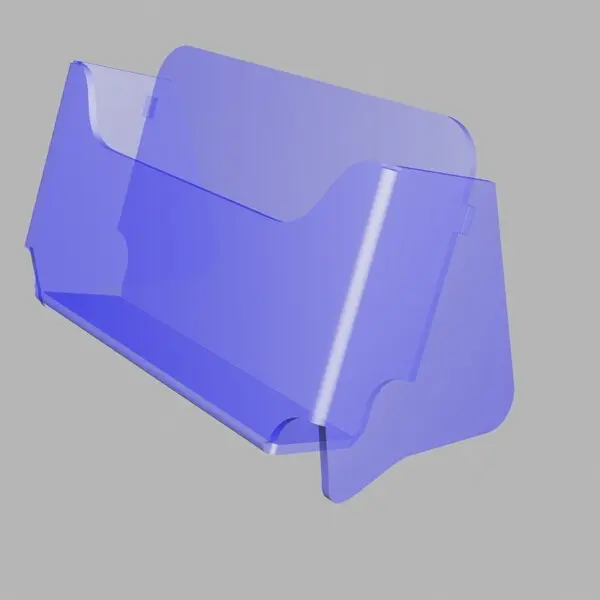 Подставка из прозрачного пластика используется на выставках для раздачи рекламных визиток компании.
