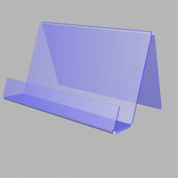 Подставка из прозрачного оргстекла используется для размещения визитных карточек на вертикальных плоскостях.