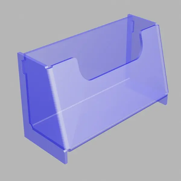 Подставка из прозрачного оргстекла используется на выставках для раздачи визиток компании, а так же в офисе на столах сотрудников. Так же прекрасно подходит для размещения карманных календарей
