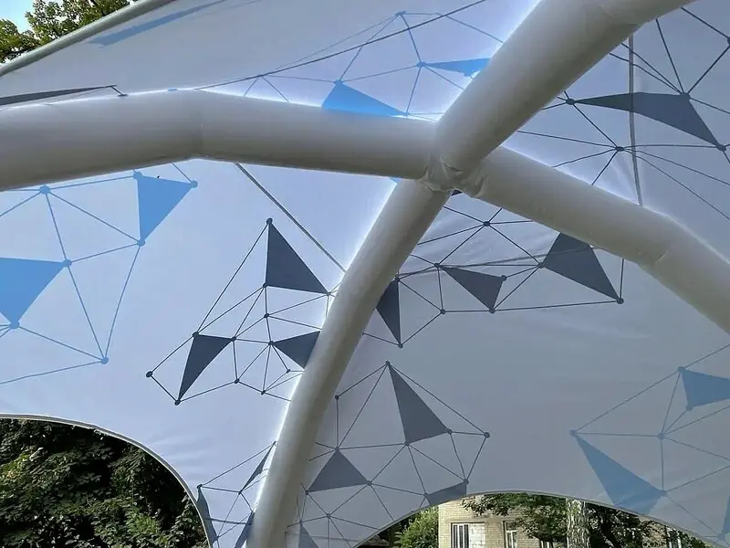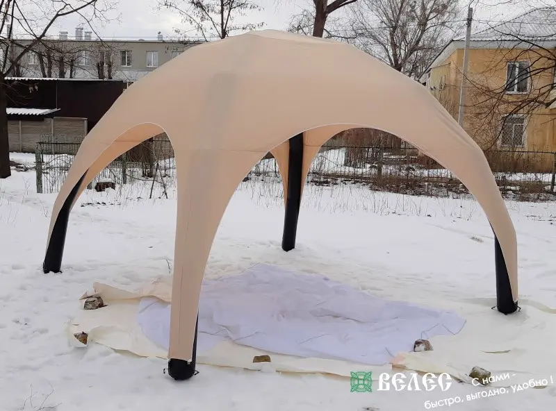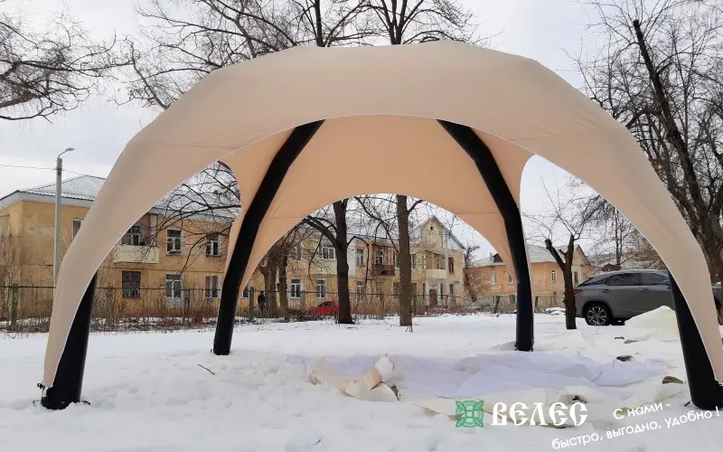 Пневмо шатёр — это лёгкая и мобильная конструкция с надувным каркасом, отличающаяся современным стилем и простотой установки.