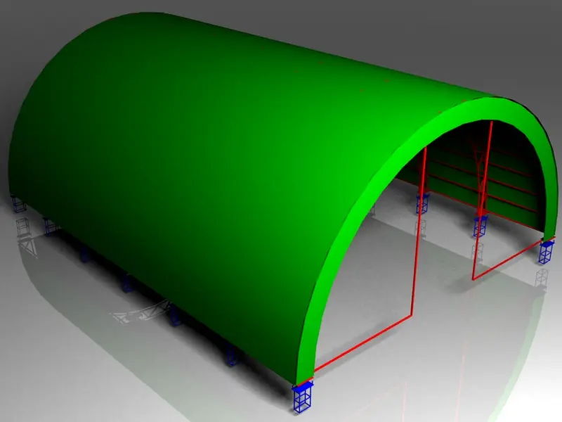 Такая форма ангаров хорошо зарекомендовала себя как надежная, дешевая и функциональная конструкция , запас прочности которой по сравнению с другими формами нАмного выше.