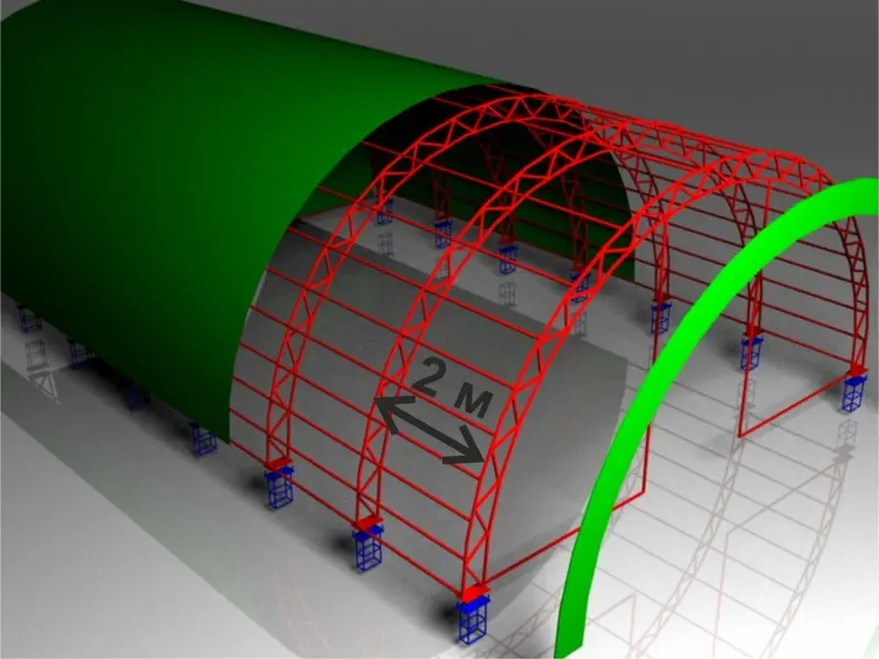 - Существенная экономия времени, т.к. каркасно-тентовый ангар не требует капитального фундамента и его можно построить в кратчайшие сроки.