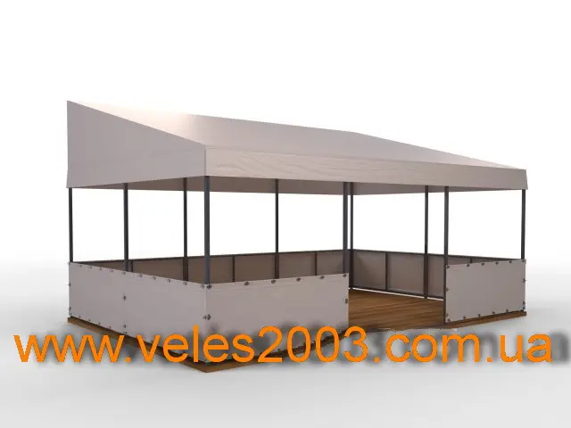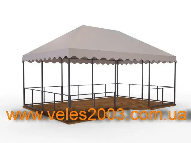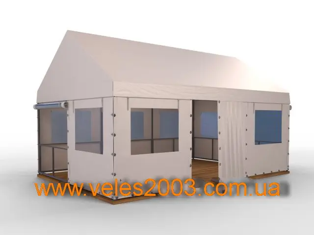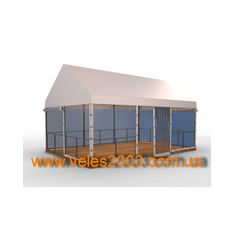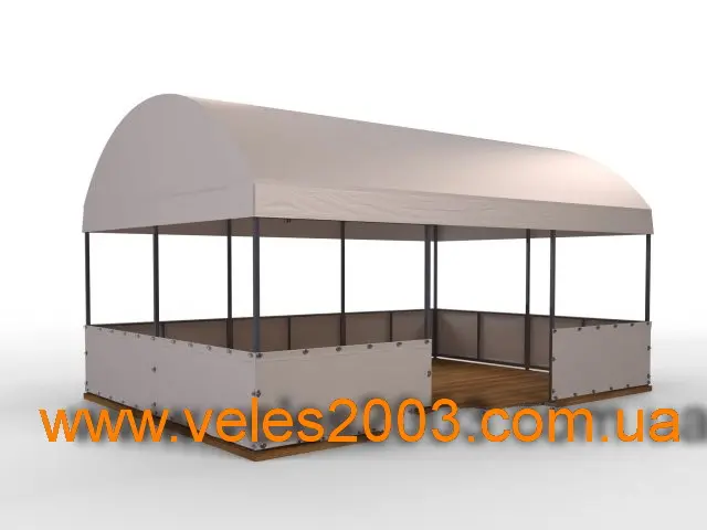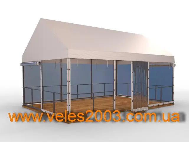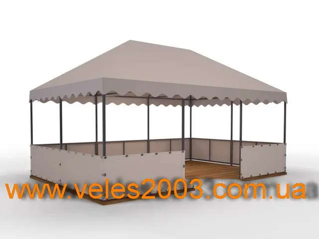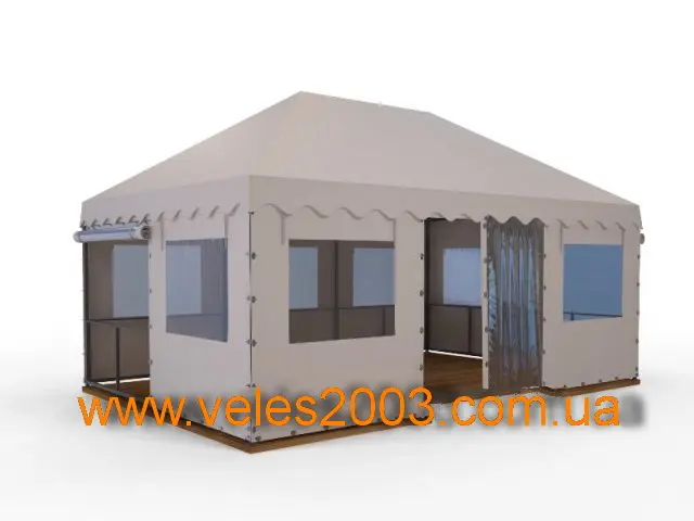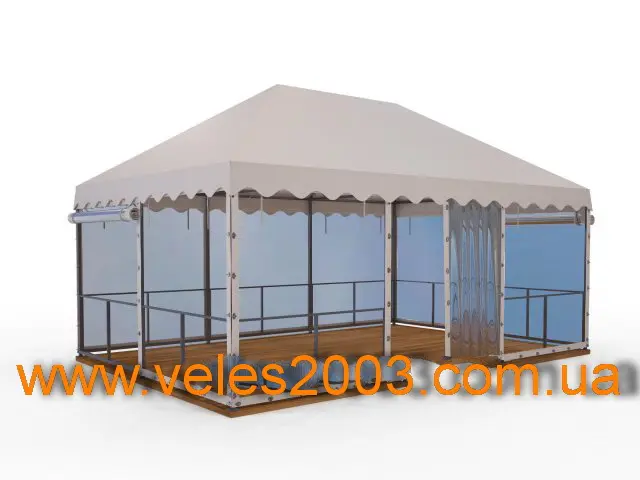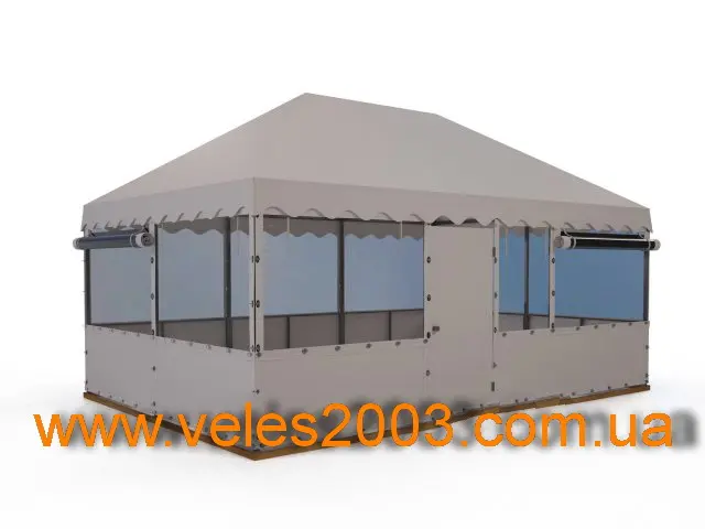 ПВХ павильон 4х6 м | 21800 грн | Каркас из профильной трубы 30х30мм и 25х25мм (покраска грунт) | Тент - ПВХ ткань плотностью 630-650 грам/квм (Корея) | В комплекте 4 шт. съемные боковые стенки, 6 окон | Форма крыши "растянутая пирамида" | |