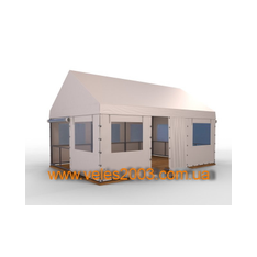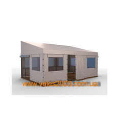 ПВХ павильон 5х8 м | 33000 грн | Каркас из профильной трубы 30х30мм и 25х25мм (покраска грунт) - ферменные конструкции | Тент - ПВХ ткань плотностью 630-650 грам/квм (Корея) | В комплекте 4 шт. съемные боковые стенки , 6 окон | Форма крыши "растянутая пирамида" | |