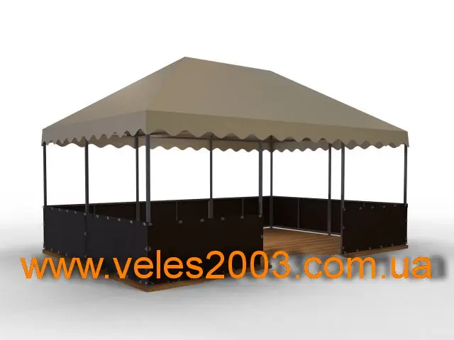 ПВХ павильон 4х4 м | 15800 грн | Каркас из профильной трубы 25х25мм (покраска грунт) | Тент - ПВХ ткань плотностью 630-650 грам/квм (Корея) | В комплекте 4 шт. съемные боковые стенки , 1 окошко | Форма крыши "пирамида" | |