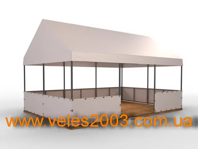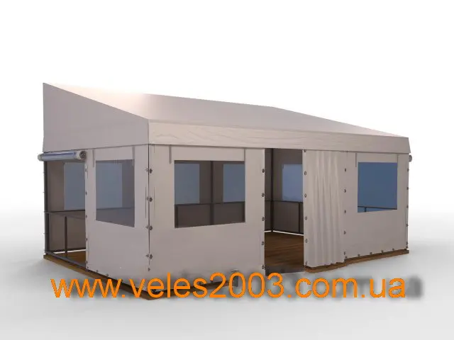 ПВХ павильон 3х7 м | 20200 грн | Каркас из профильной трубы 25х25мм (покраска грунт) | Тент - ПВХ ткань плотностью 630-650 грам/квм (Корея) | В комплекте 4 шт. съемные боковые стенки , 3 окошка | Форма крыши "растянутая пирамида" | |