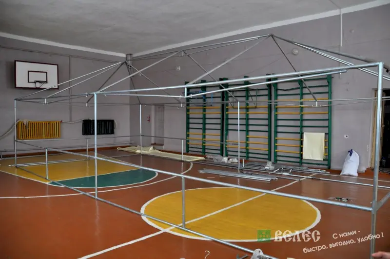 Тентовое покрытие. Натянутое поверх металлоконструкции тентовое покрытие придает всему сооружению дополнительную жесткость, позволяющую легко выдерживать любые катаклизмы: порывы ветра, сейсмические удары, давление снега и других осадков. Покрытие из тентовых материалов обладает рядом характеристик: огнеустойчивость, нефтеустойчивость. В зависимости от региона установки мобильной конструкции применяются обычные либо морозостойкие материалы. При механическом повреждении покрытия (разрез, разрыв) дефекты легко устраняются. Цветовое решение мобильного здания заказчик определяет самостоятельно, а наши специалисты только помогают выбрать наилучший вариант. Мы подберем оттенок и изготовим покрытие с вашим фирменным цветом логотипом или названием предприятия.