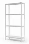 Полки в таких стеллажах крепяться к стойкам по принципу пазовых соединений.